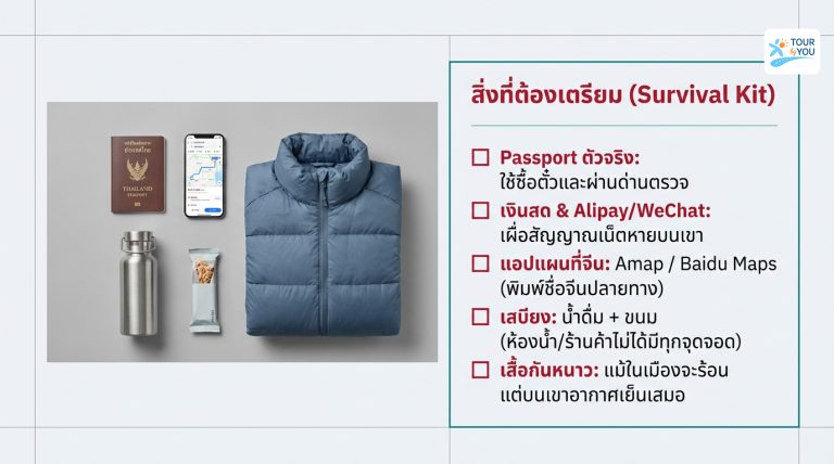 เสื้อกันหนาว/กันฝน ถ้าจะขึ้นเขา (เสฉวนในเมืองอาจไม่หนาว แต่บนเขาเย็นเสมอ)