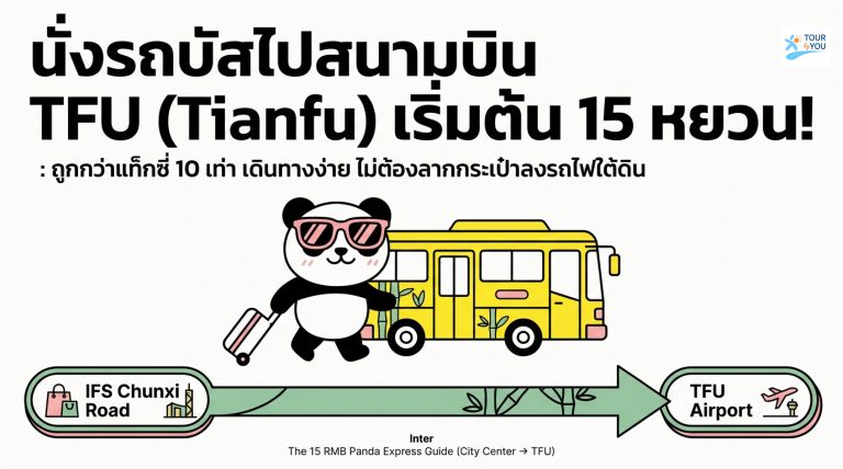 “คู่มือเดินทาง : จาก IFS ไปสนามบินเทียนฟู่ (TFU) ด้วย Airport Bus ราคาเริ่ม 15 หยวน”