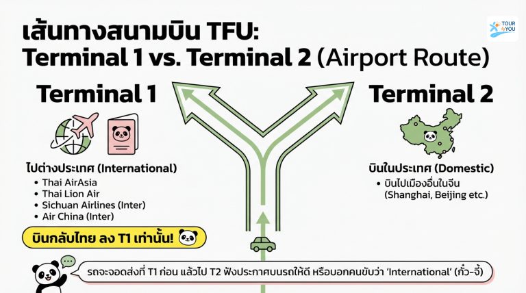เส้นทางสนามบิน TFU : Terminal 1 vs. Terminal 2 (Airport Route)